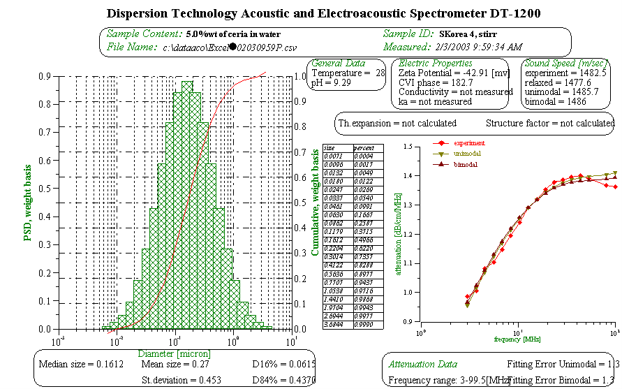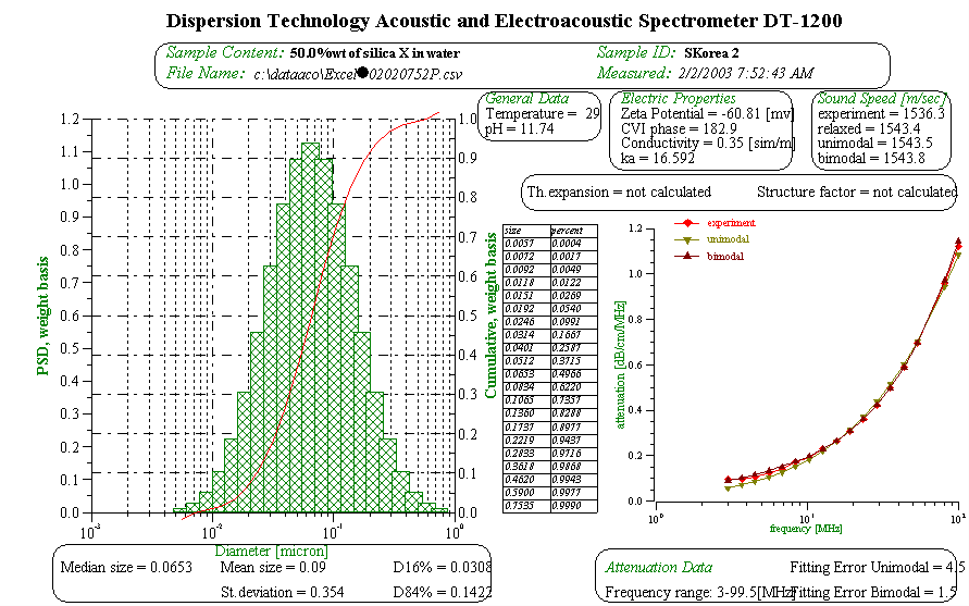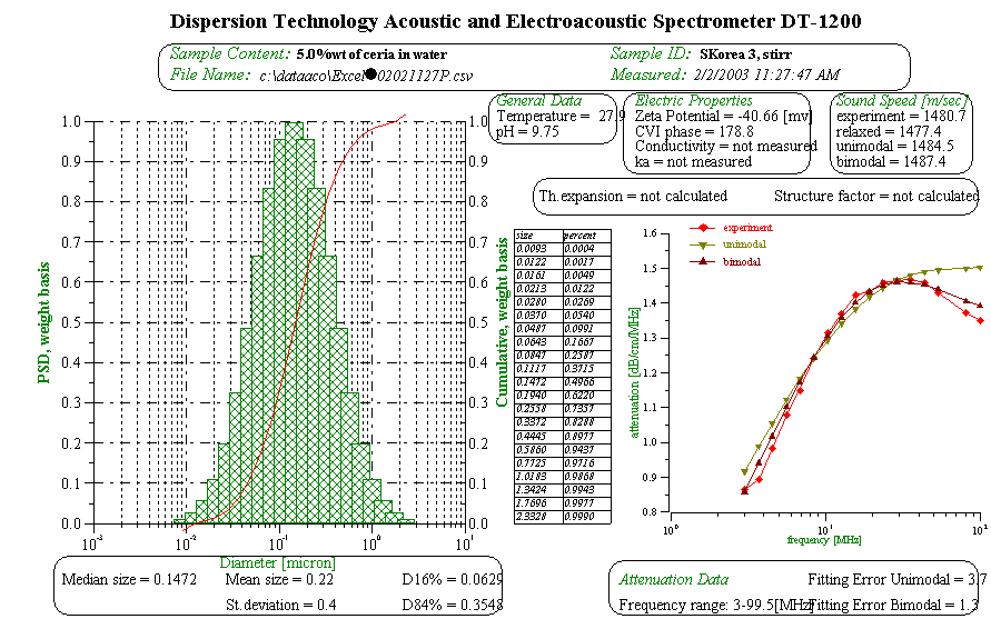 Concerning goal 2, we had shown in our previous newsletter dedicated to the CMP slurries (Part 1. “Resolution of Acoustic Spectroscopy in characterization of the large particle content in CMP slurries”, www.dispersion.com ) that Ultrasound cannot compete with counting methods, in particular, Accusizer from PSS.