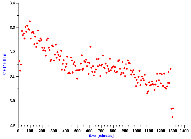 In order to get answer to this question we turned off stirrer and run continuous measurements over following 30 hours. Figures A.1 and 2 illustrate results of this so-called “time titration” in DT-1200 software.