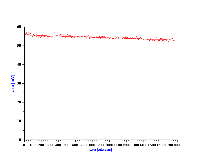 Figure A.3. Zeta potential versus time, 360 continuous measurements with variation about 0.3 mV.
